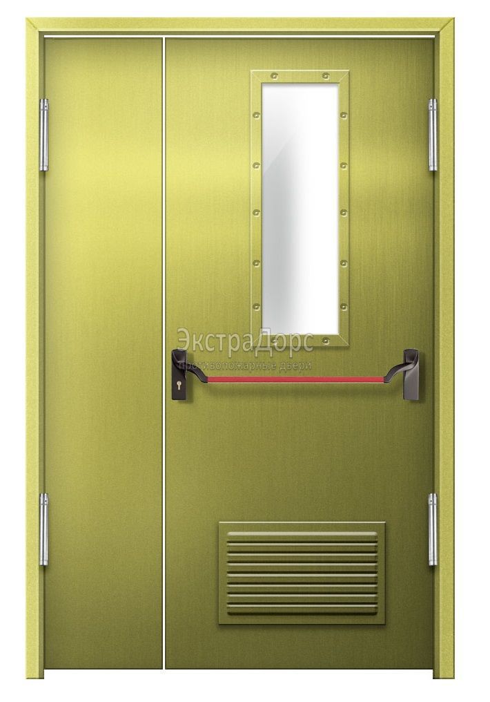 Противопожарная дверь EI 60 дымогазонепроницаемая стальная со стеклом, антипаникой и решеткой в Видном