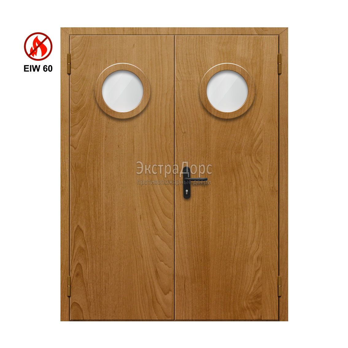 Двухстворчатая огнестойкая дверь с отделкой из МДФ EIW 60 ДОП-02-EIW-60 ДП45 двупольная остекленная в Видном