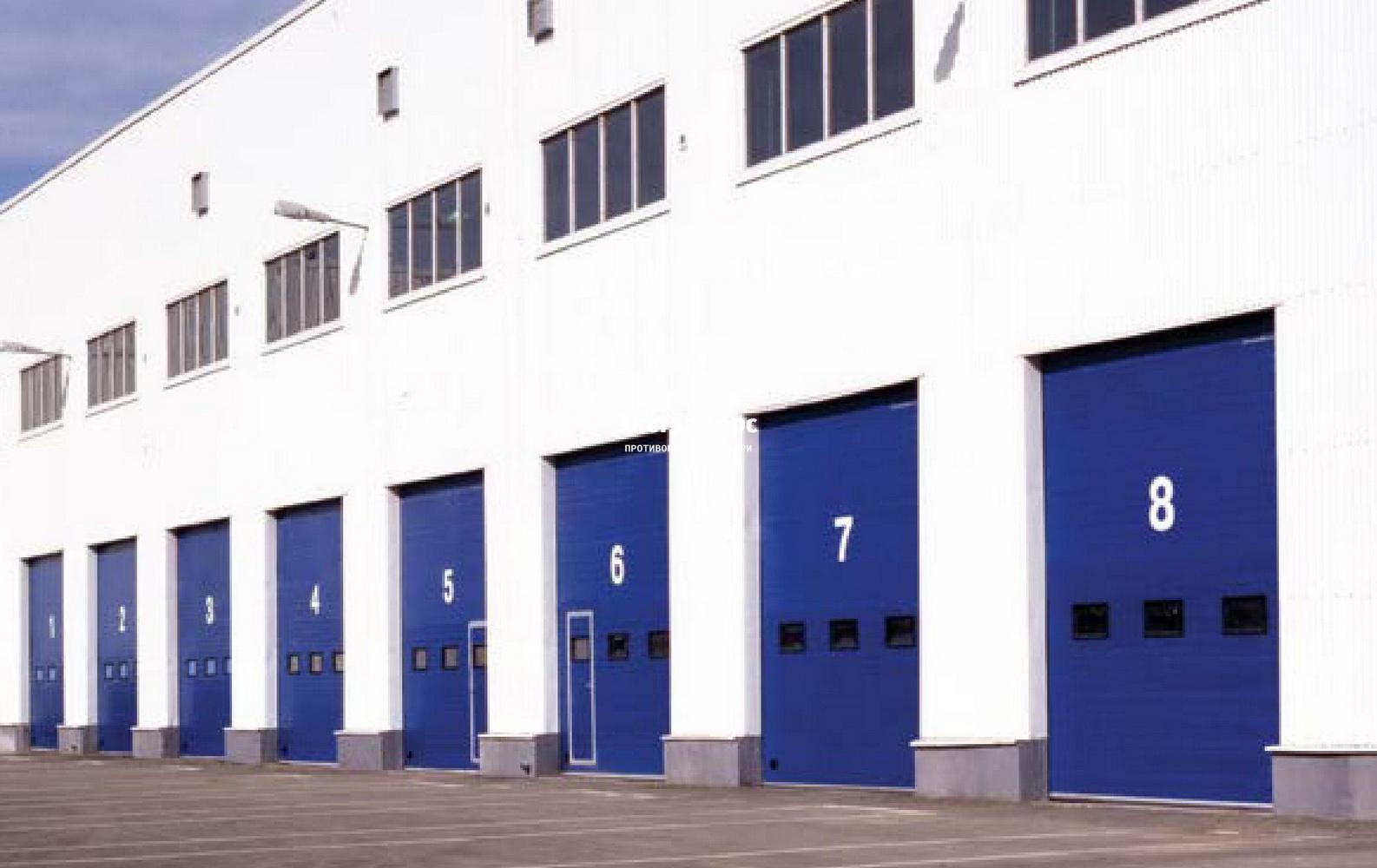 Синие огнеупорные промышленные ворота с окнами в Видном