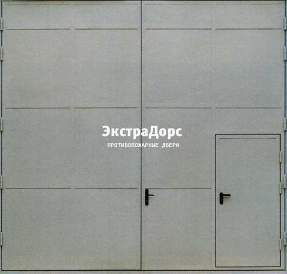Серые распашные противопожарные ворота с калиткой