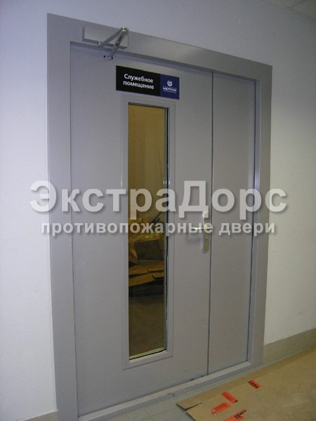 Двухстворчатая противопожарная дверь с прямоугольным стеклом в Видном