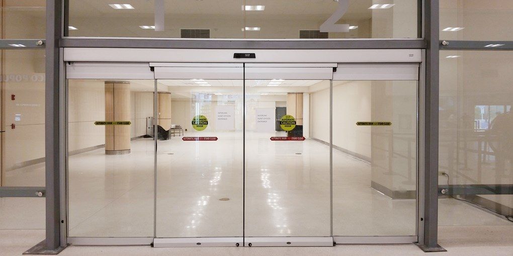Противопожарная безрамная дверь со стеклом в бизнес центр в Видном