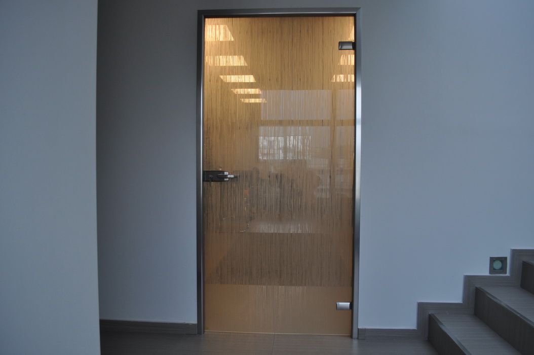 Противопожарная безрамная дверь со стеклом в БЦ в Видном