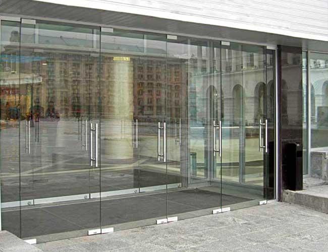 Противопожарная безрамная дверь со стеклом в торговый центр в Видном