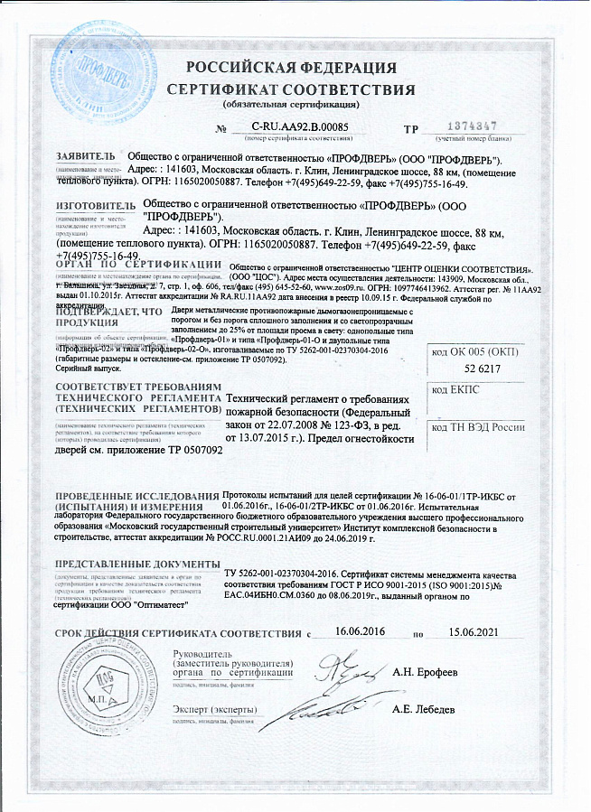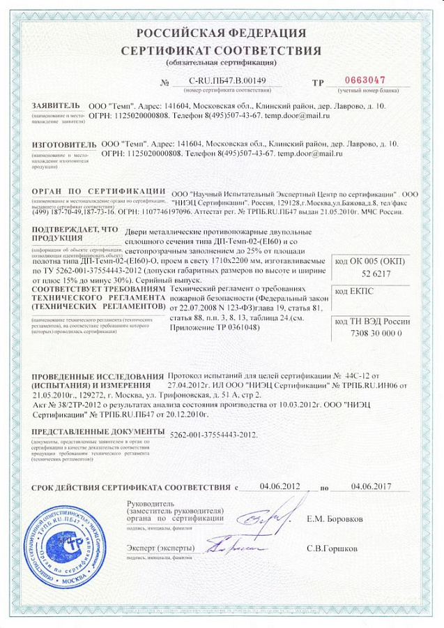 СЕРТИФИКАТЫ НА ПРОТИВОПОЖАРНЫЕ ДВЕРИ И ЗАМКИ